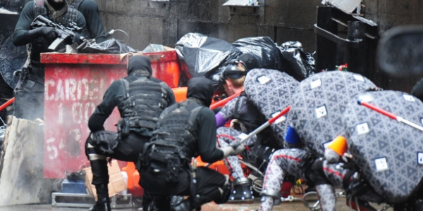 Rumors are that actor William Fitchner has been cast to play The Shredder, or some incarnation of the villian named Colonel Schader. In the pics below that features the “turtles” apparently captured by a militia-stylized Foot, so where you see The Foot, Shredder can’t be far behind.